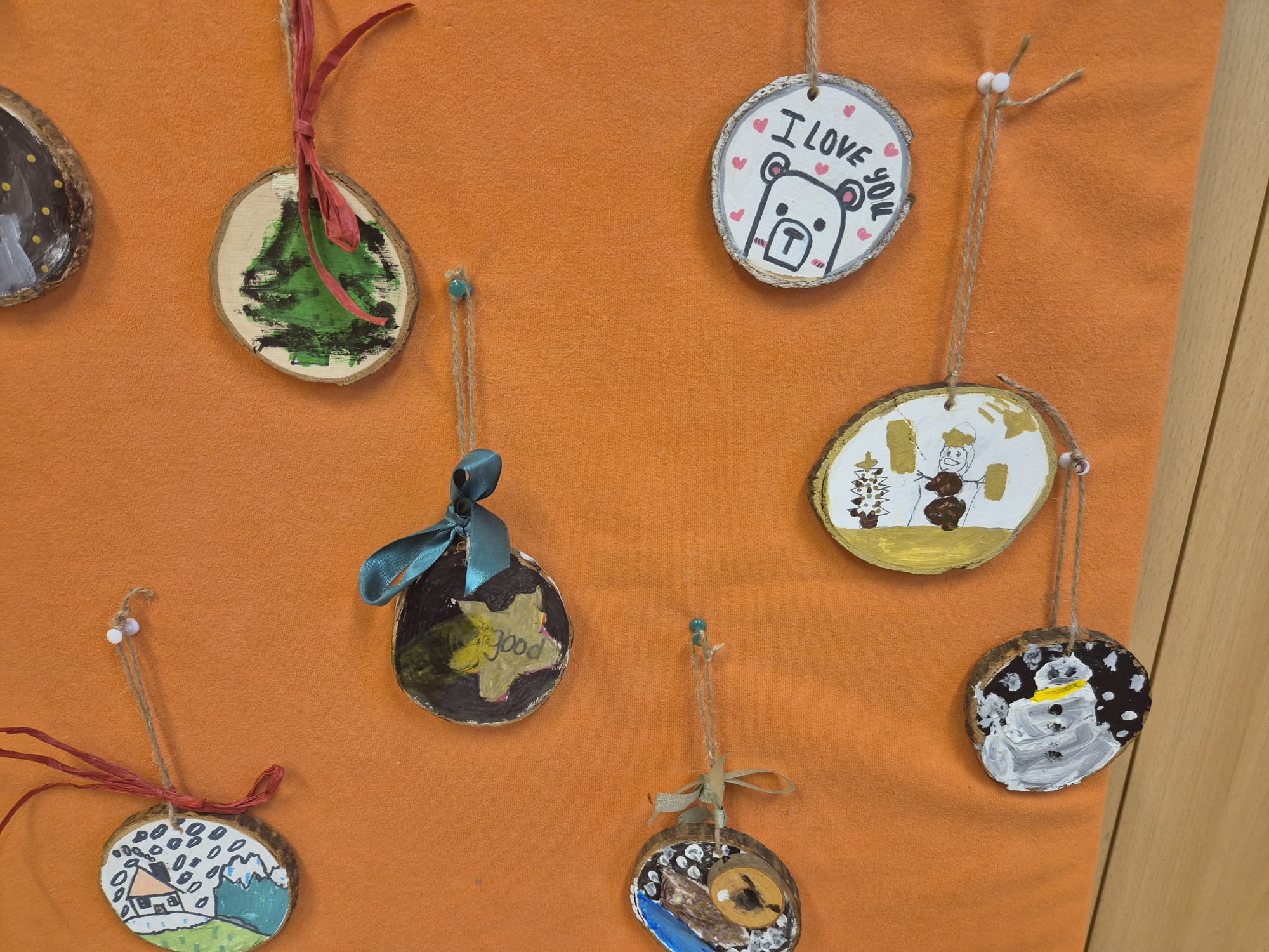 Izrada kuglica od drveta započela je bojanjem drvenih podložaka temperom i izradom crteža na temu zime i nadolazećeg blagdana Božića. Svaka kuglica je na drugom strani imala i čestitku za blagdane.