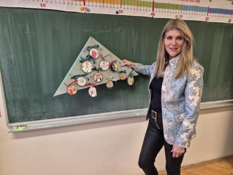 Učenici su bili zadovoljni sa svojim uradcima i kuglicama su ukrasili svoje borove u školi.