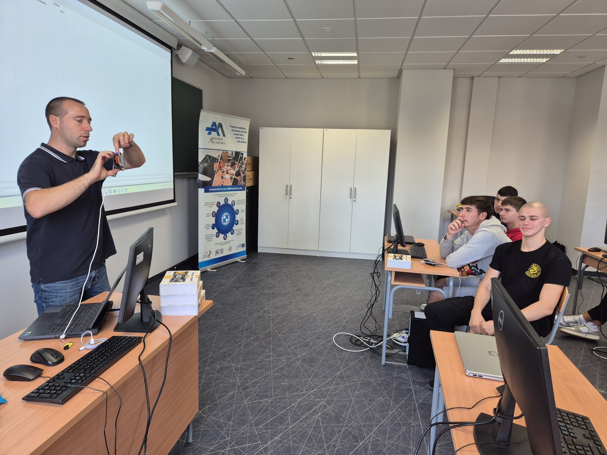 Radionice su odrađene za 3 i 4 razred srednje škole. Radionicu je prošlo 40 učenika sa svojim predmetnim profesorima. Obje radionice su odrađene u okviru Programa Arhimed academia Hrvatske zajednice inovatora.