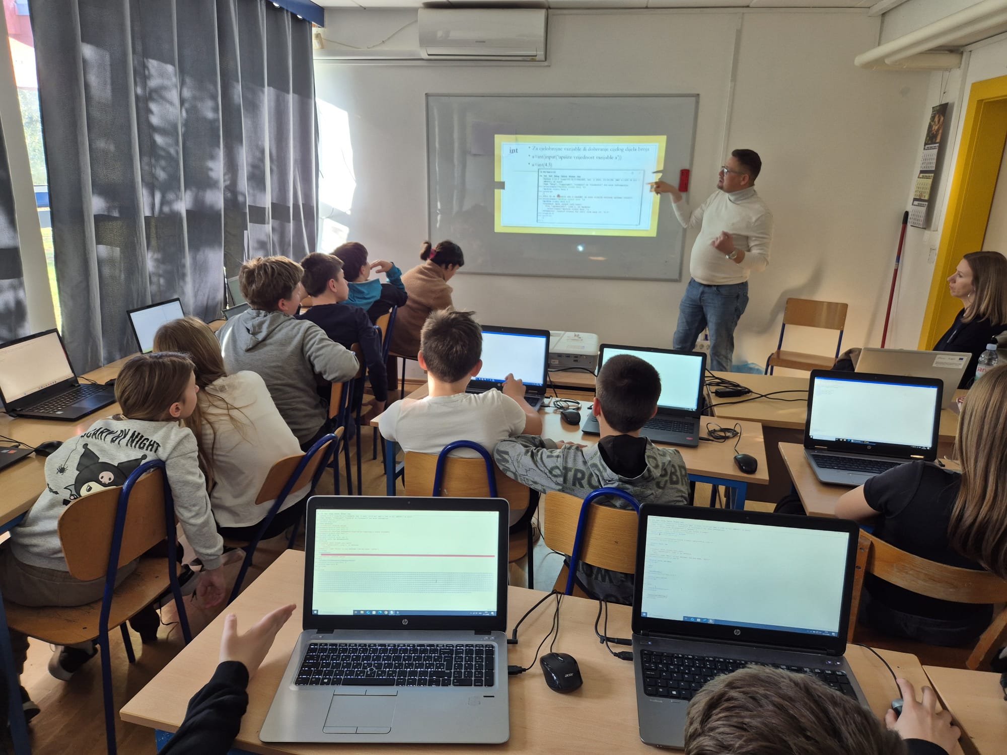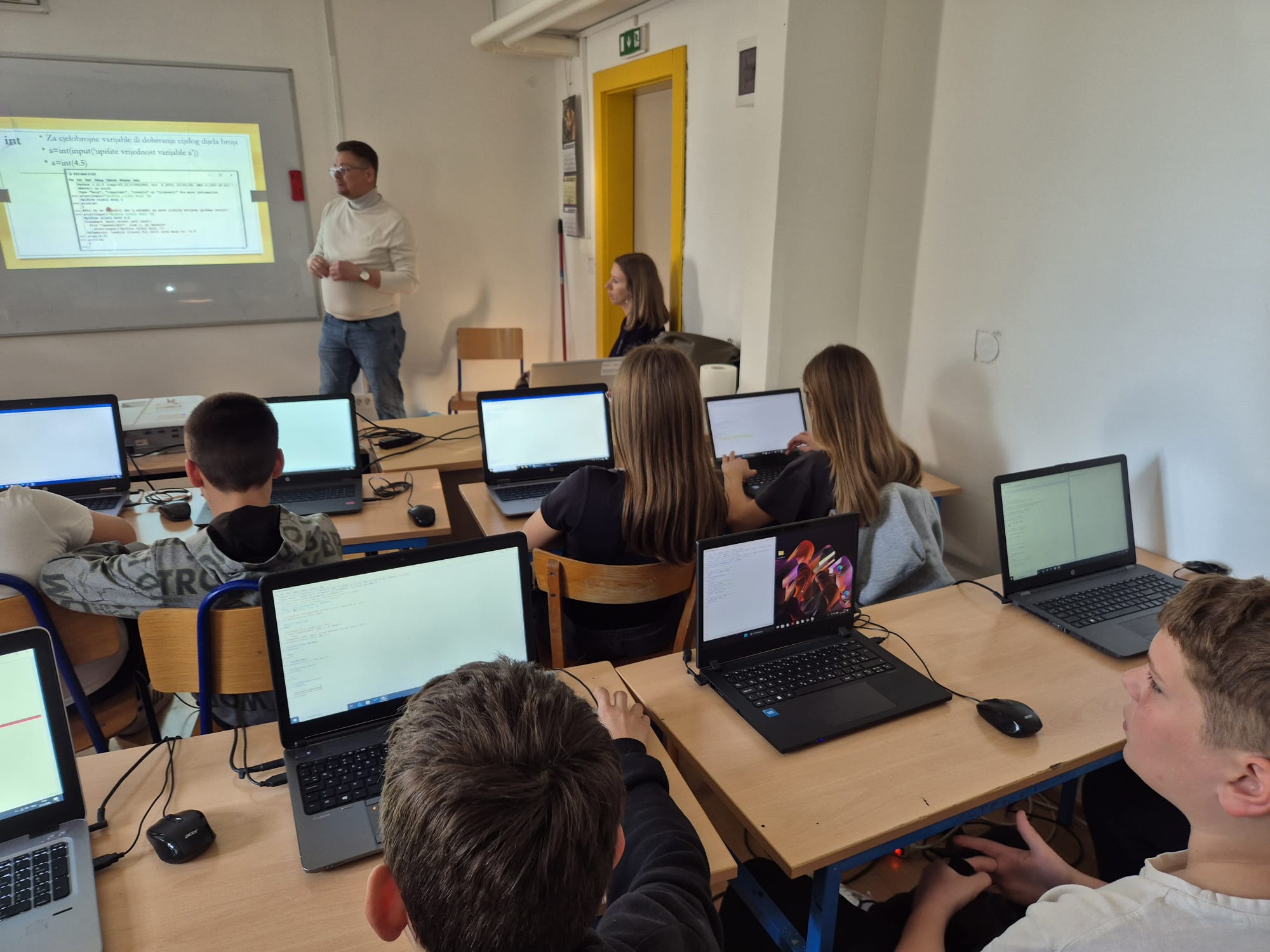 Učenici su uz pomoć predavača učili rješavati jednostavne problemske zadatke s osnovnim analitičko-logičkim naredbama, te pisati programski kod, spremati i koristiti u popularnom programskom jeziku – Python-u.